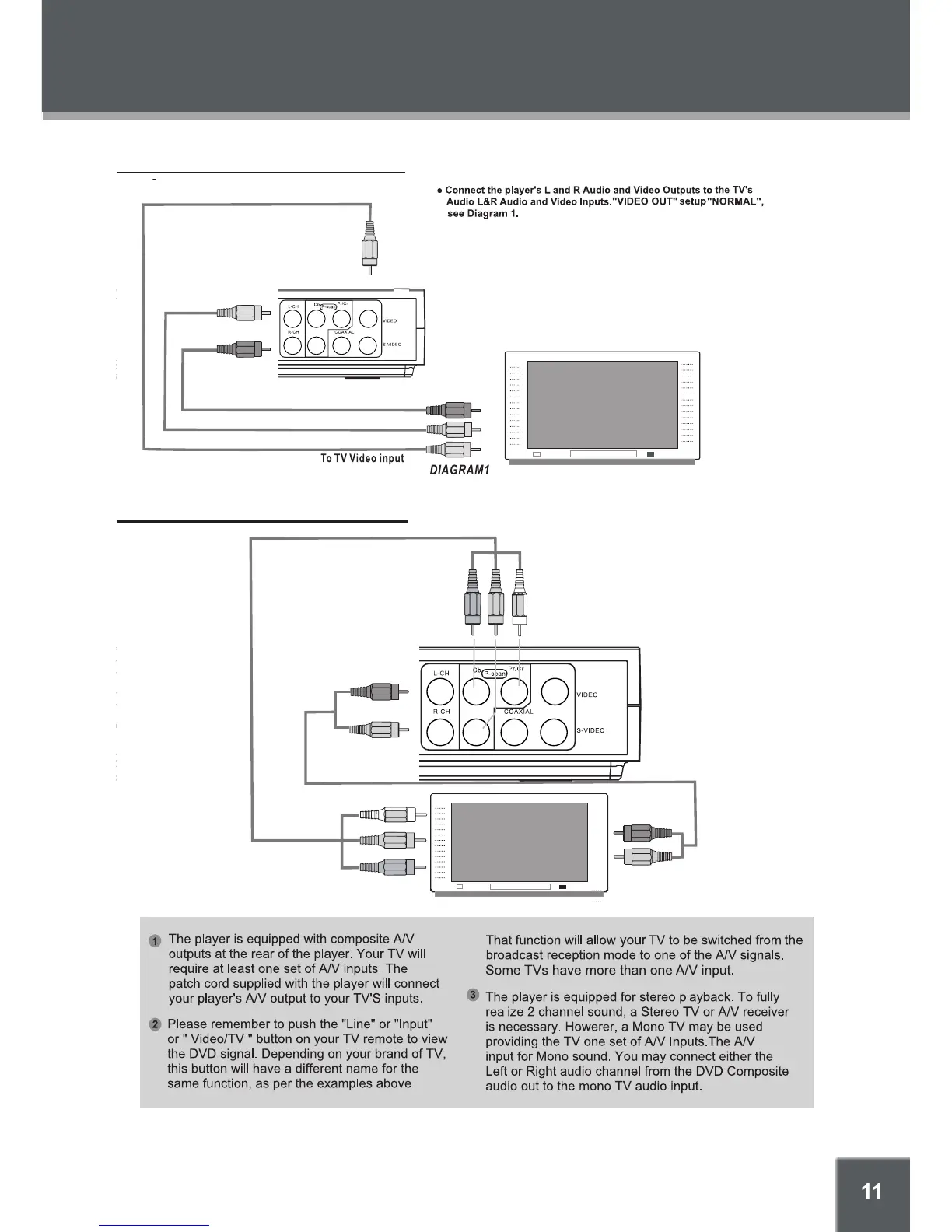 Coby DVD-514 - Connections; Standard Television Set Connection; Progressive Scan Video Connection