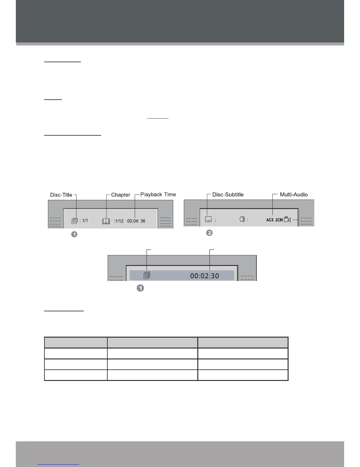type status. The OSD indicator will display information based on the type of disc that has been