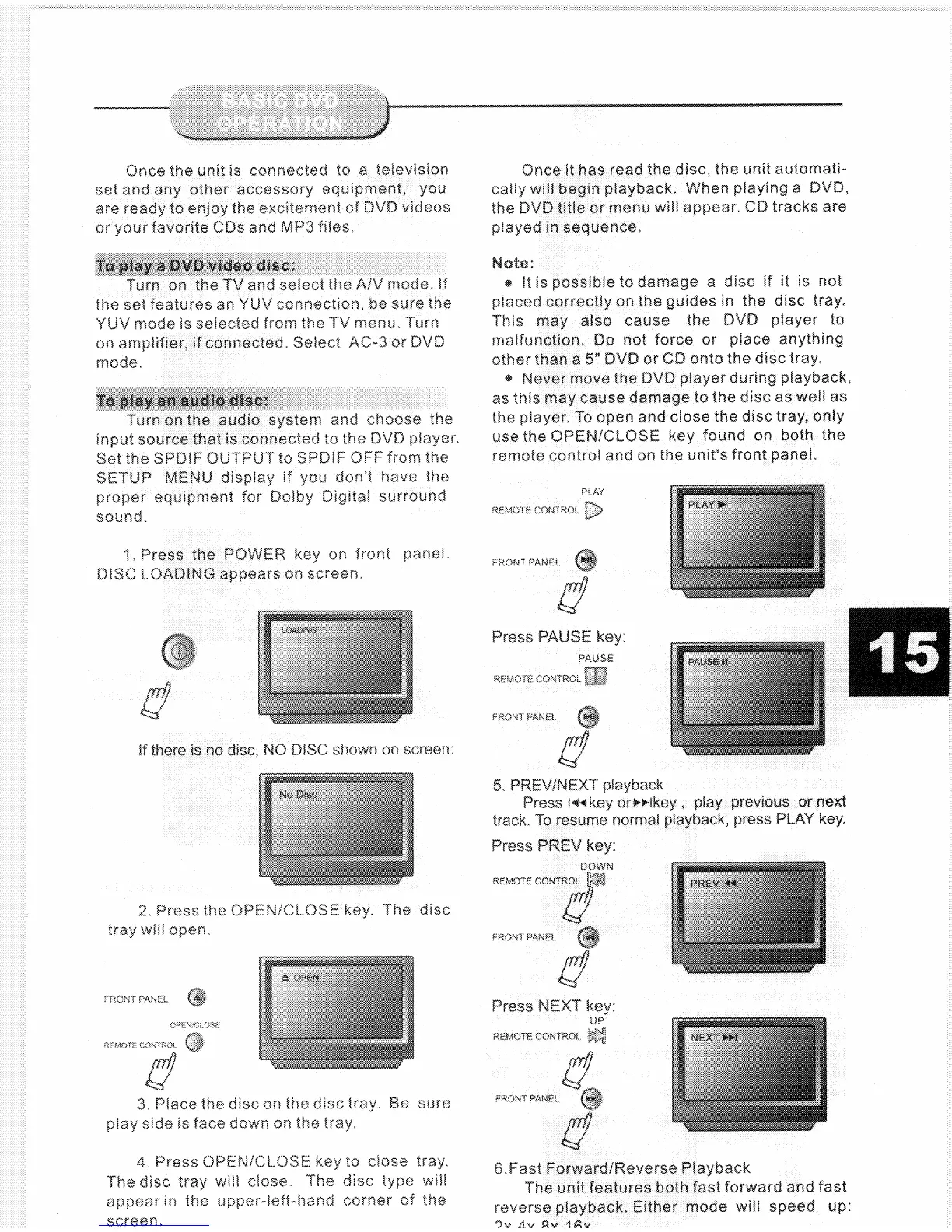 Coby DVD-925 - Basic DVD Operation; Playing DVD and Audio Discs; Standard Playback Controls