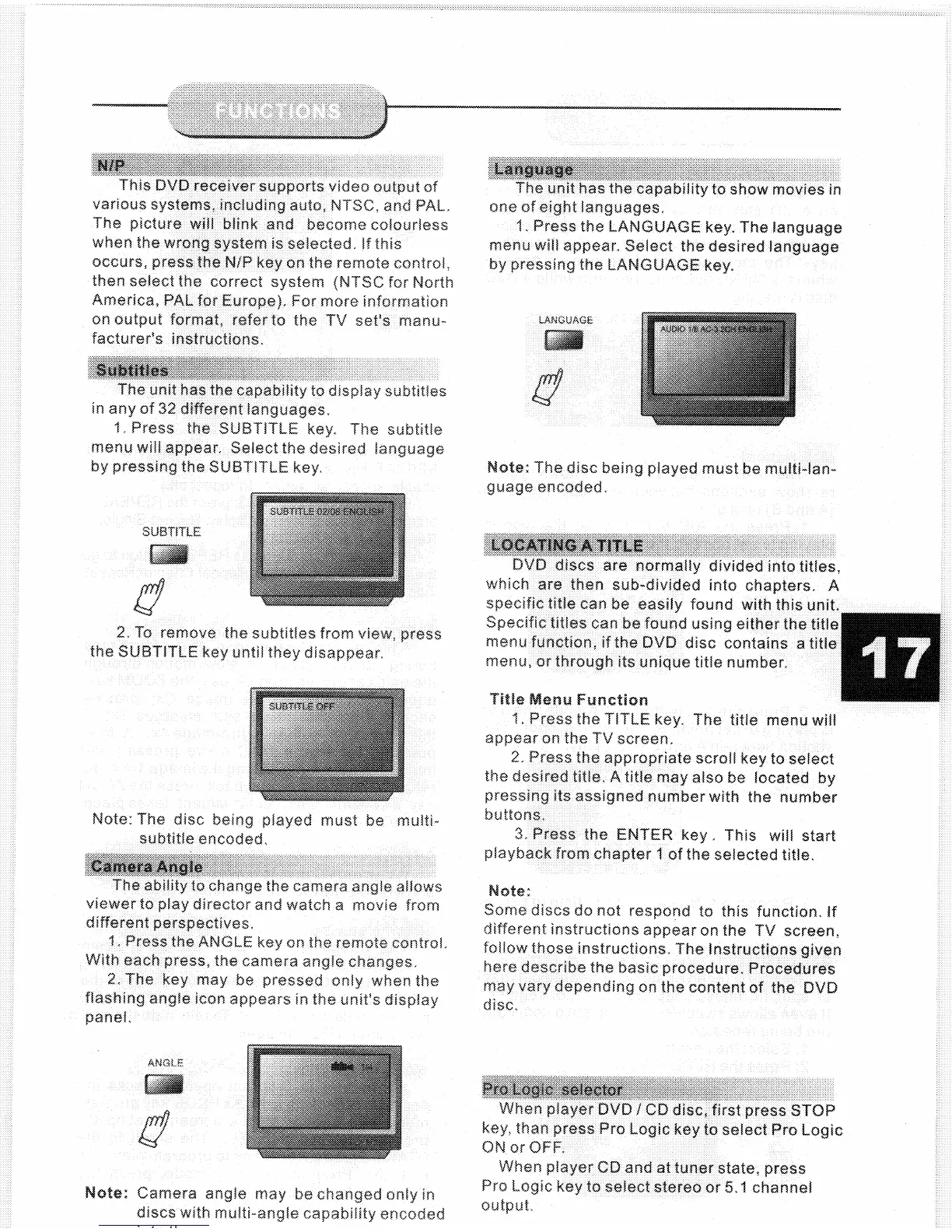 Coby DVD-925 - N;P; Subtitles; Camera Angle; Language