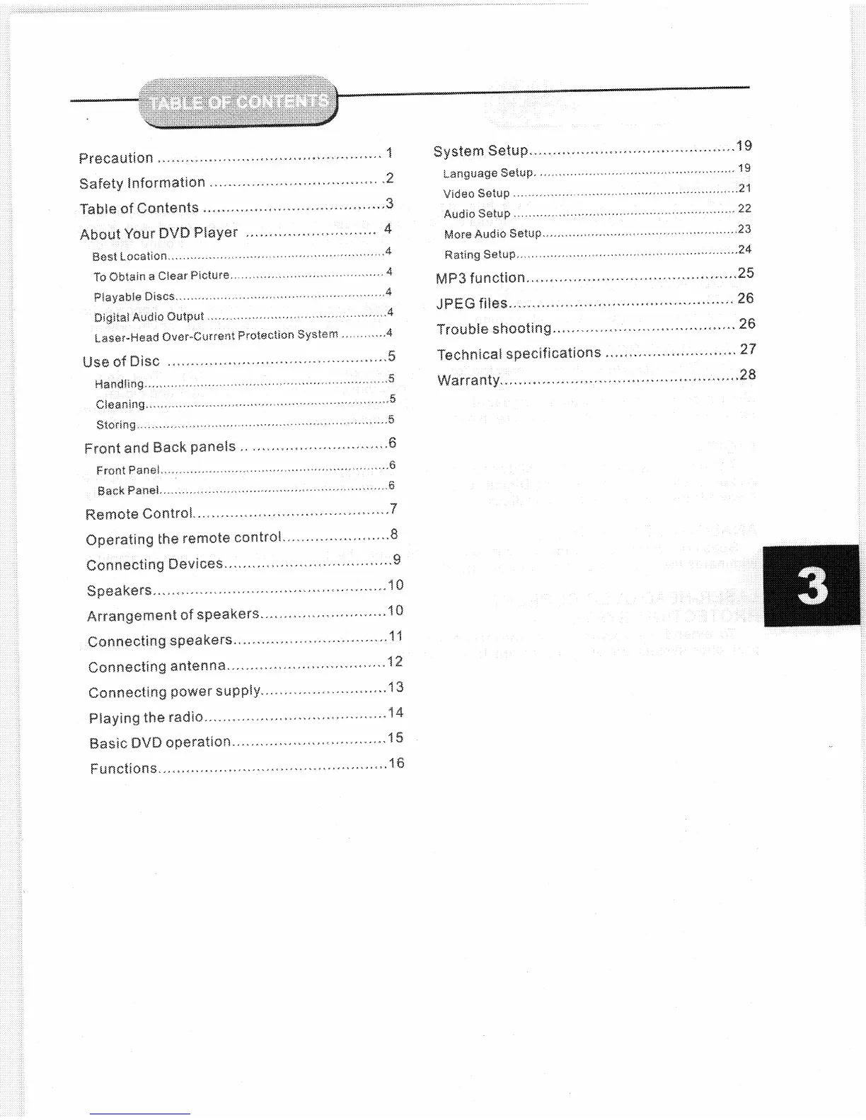 Coby DVD-925 - Table of Contents