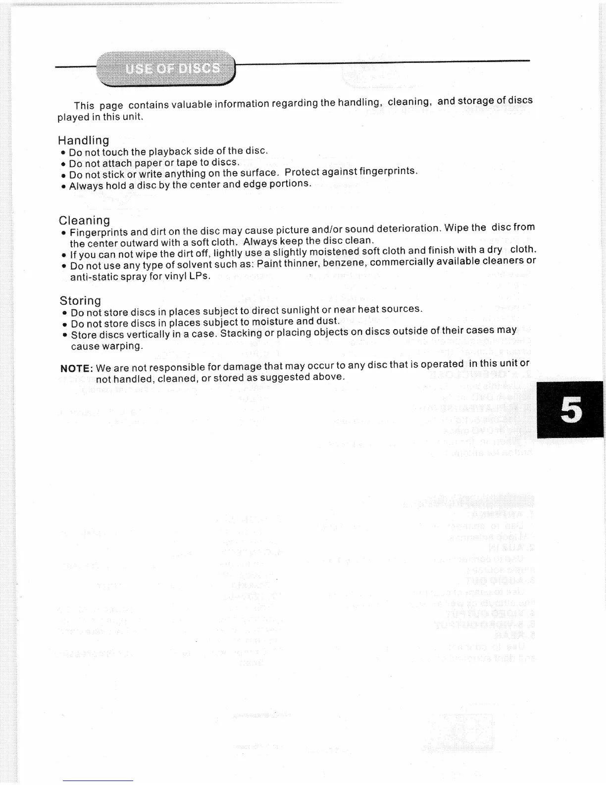 Coby DVD-925 - Use of Discs; Handling; Cleaning; Storing