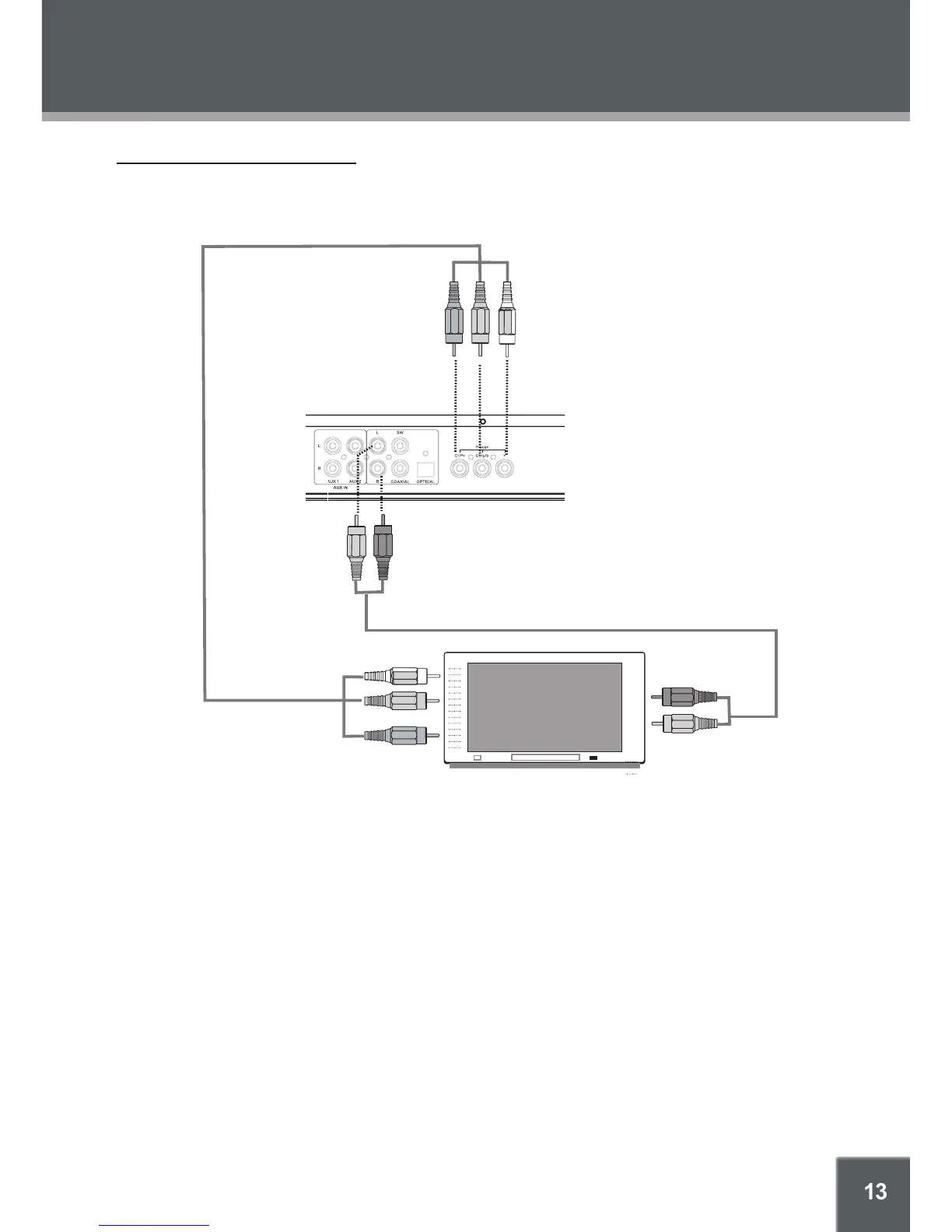 The player is equipped with RCA composite AV outputs located on the rear panel. Your TV must