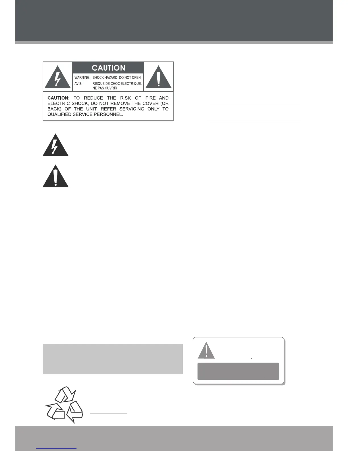 To prevent re or shock hazard, do not expose this device to rain or moisture. Dangerous high voltage is present inside the