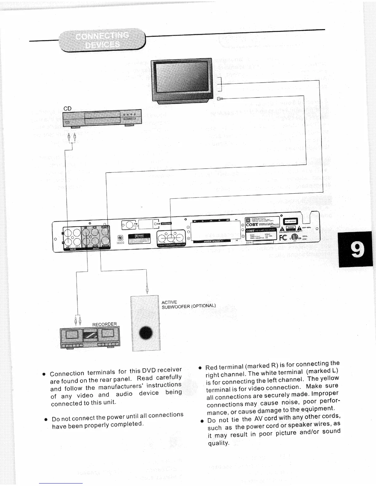 Coby DVD915 - Connecting Devices; Rear Panel Connections; Connection Best Practices