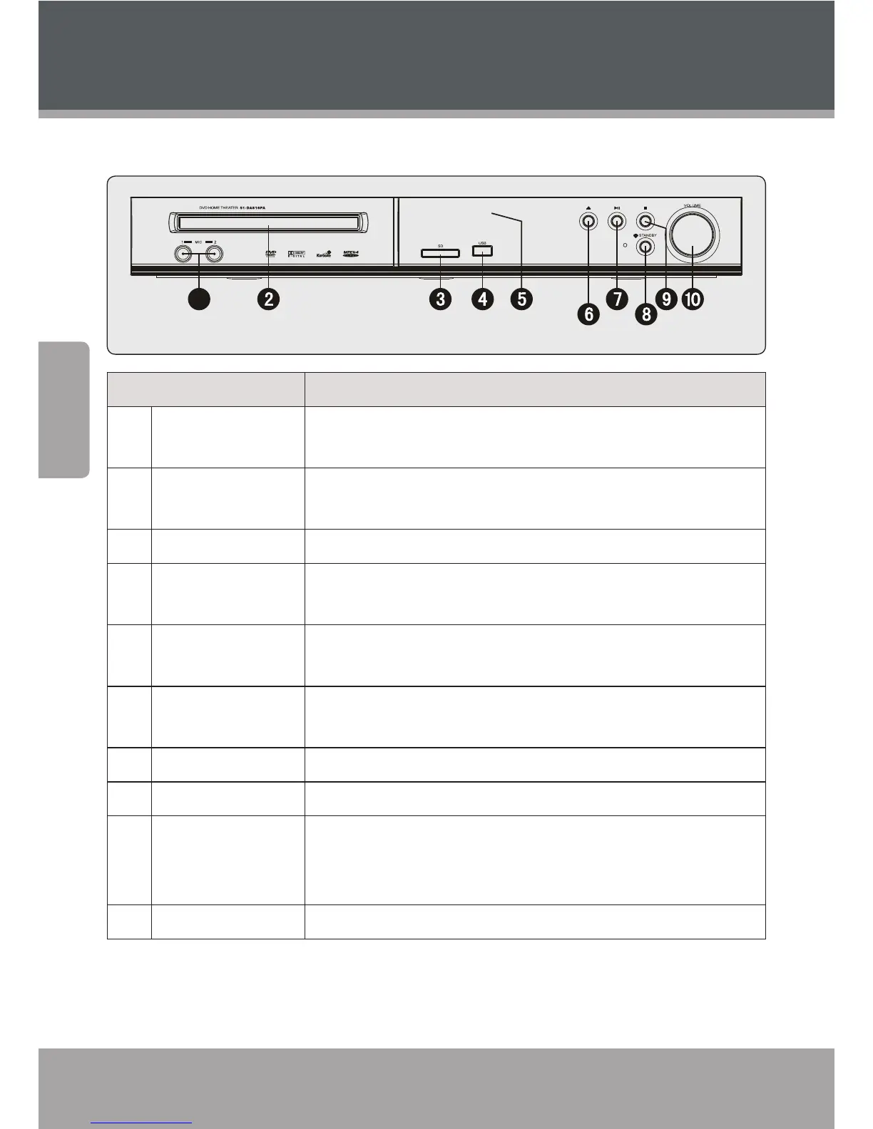 9 Encendido / Espera Enciende o apaga la unidad (espera). El interruptor principal de