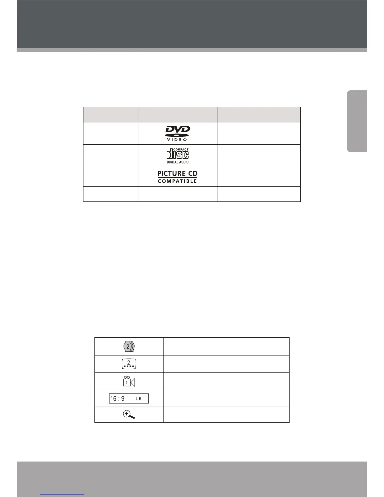 This DVD player supports playback of the following media types and