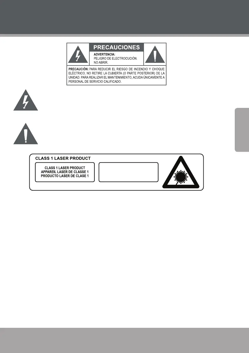 Debido a que el rayo láser utilizado en este reproductor es perjudicial para la vista, no intente •