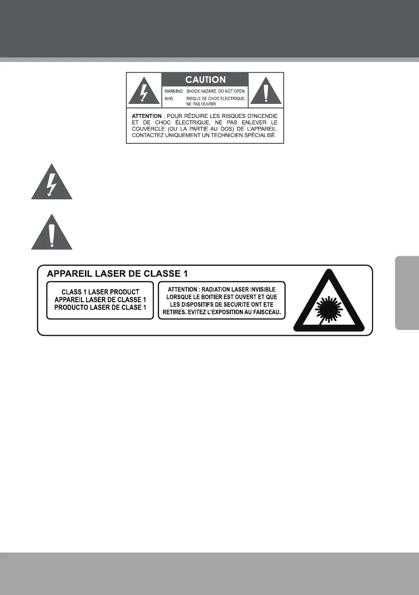 Comme le faisceau laser utilisé dans ce lecteur est néfaste pour les yeux, n’essayez pas de •