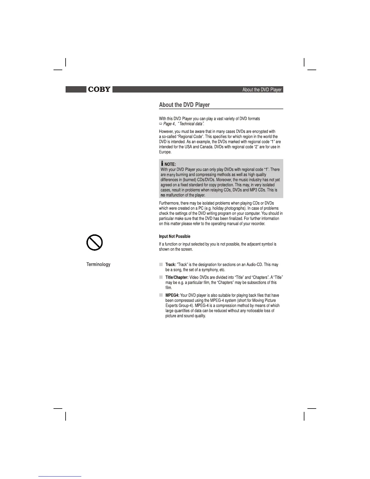 Coby DVD988 - About the DVD Player; Input Not Possible
