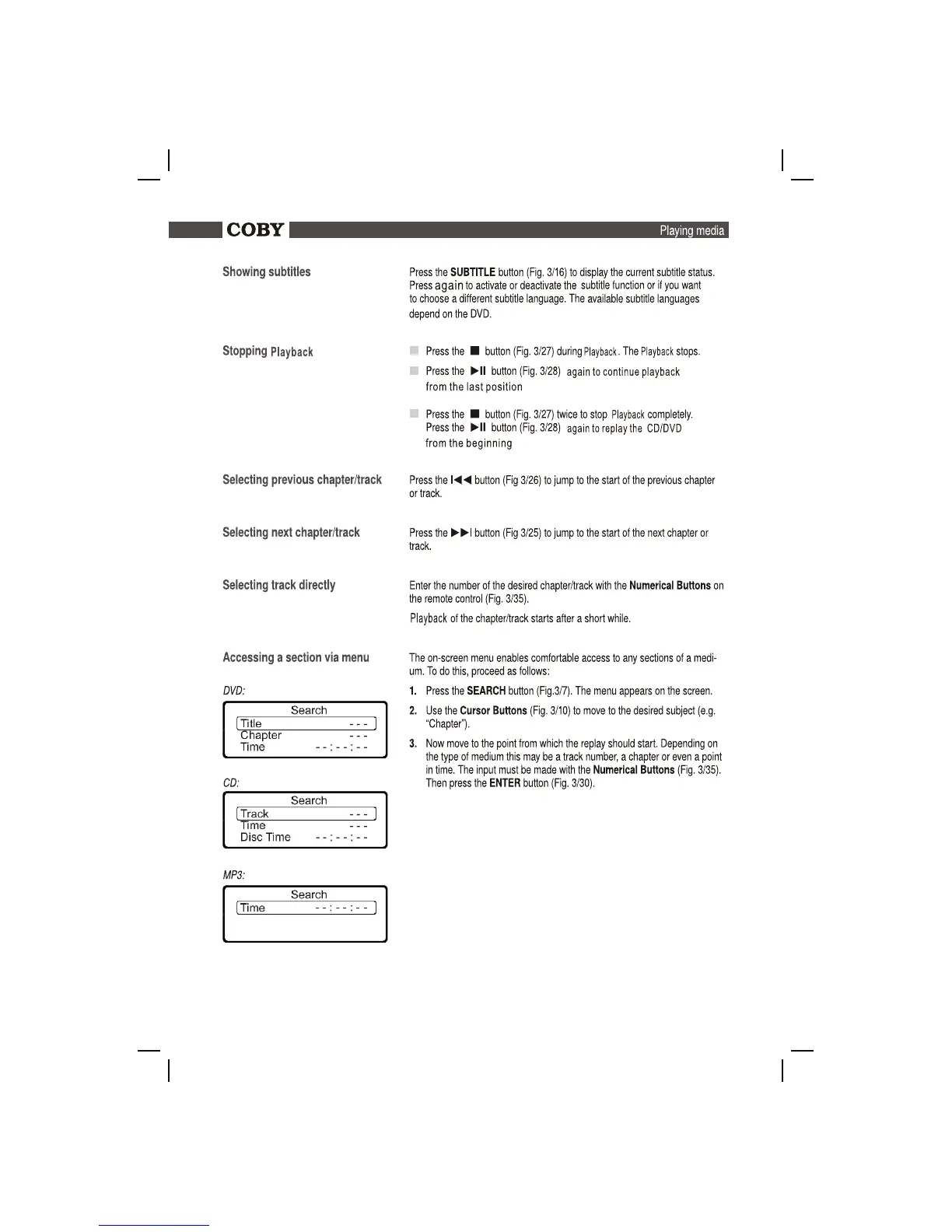 Coby DVD988 - Playback Navigation and Controls
