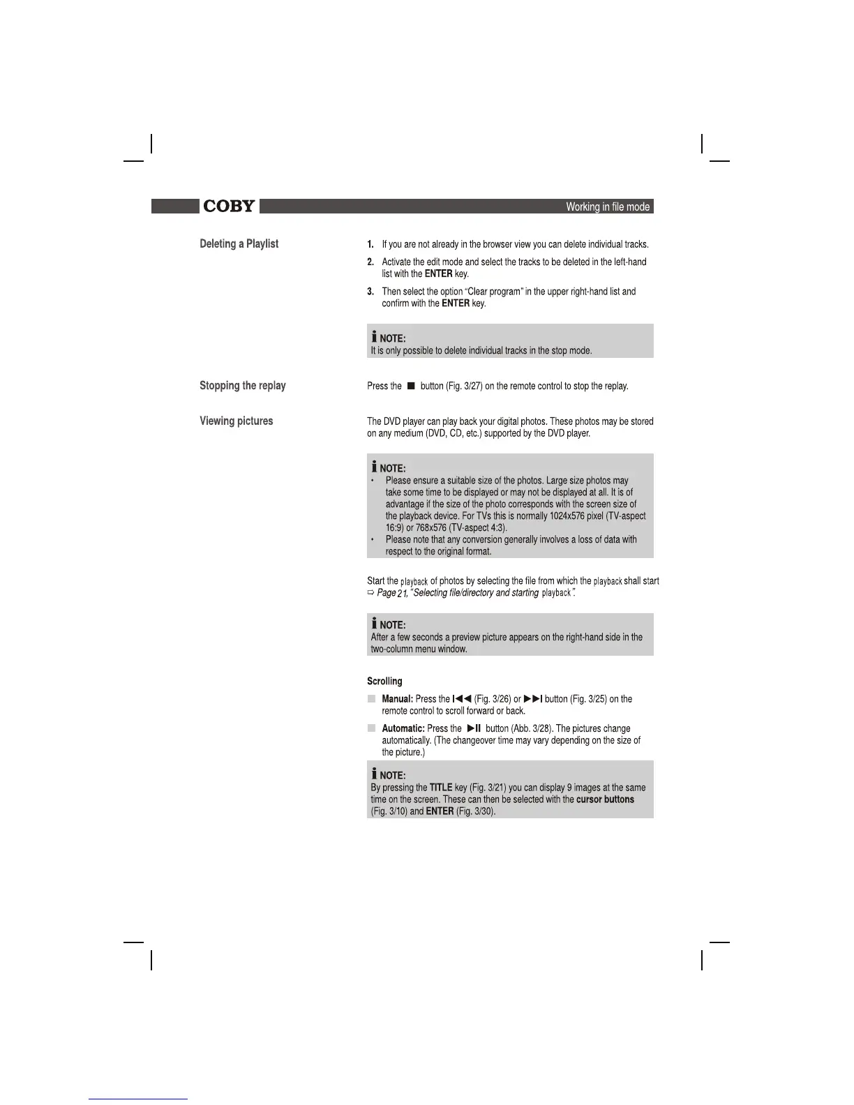 Coby DVD988 - Deleting a Playlist; Stopping the Replay; Viewing Pictures