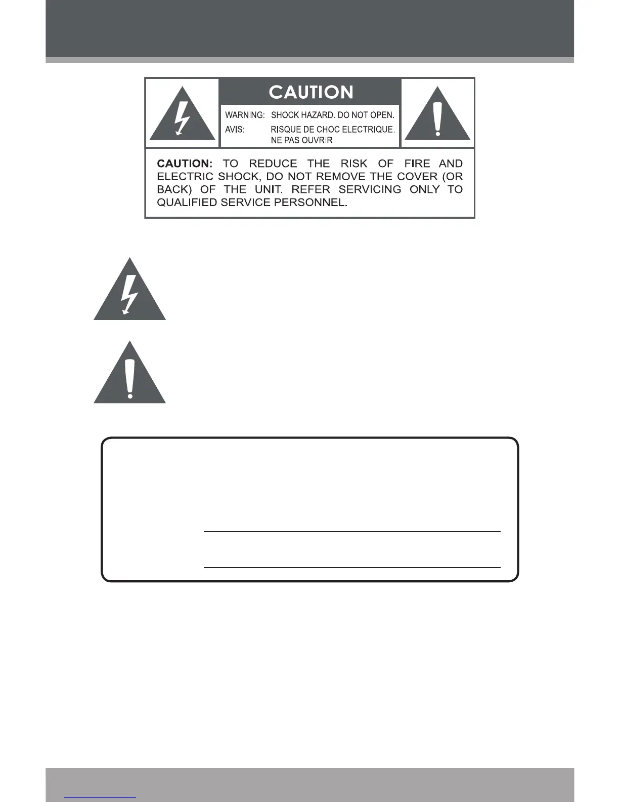 WARNING: To prevent re or shock hazard, do not expose this device to rain or moisture.