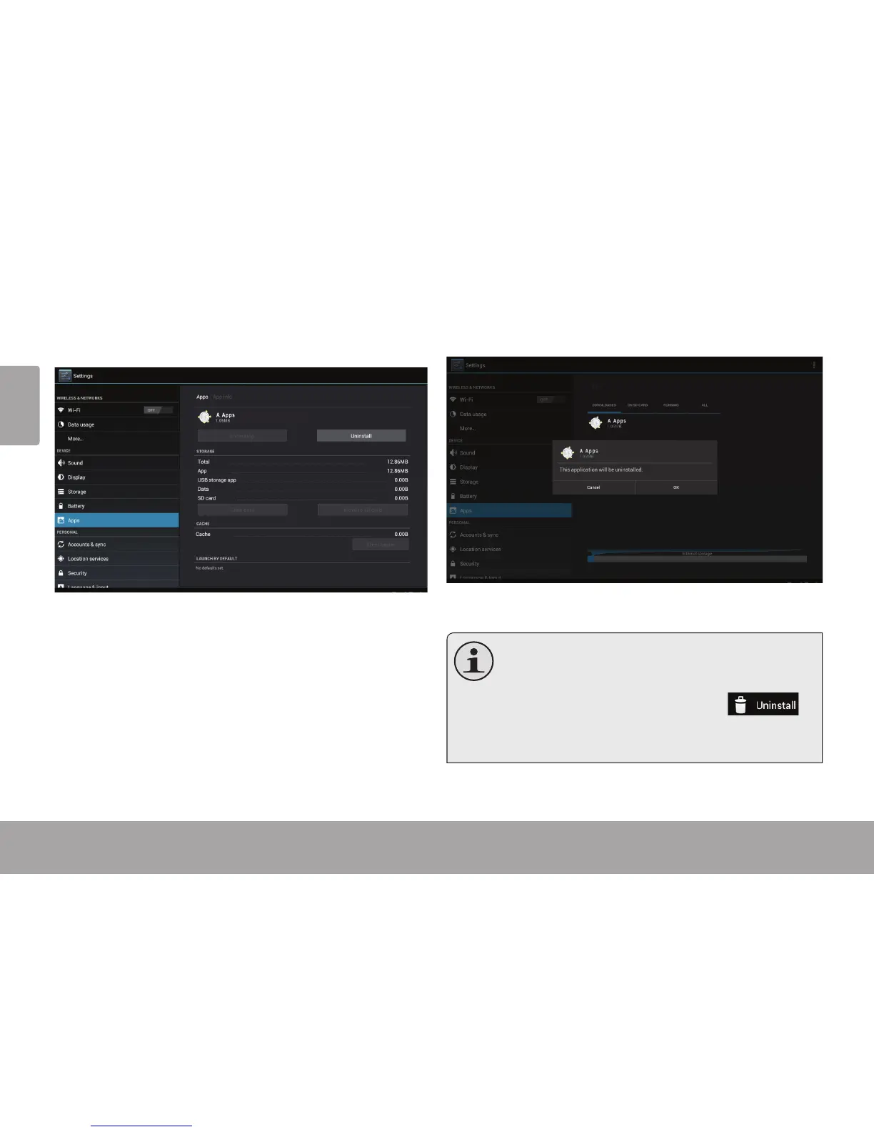 5. Touchez Uninstall (Désinstaller). La tablette vous