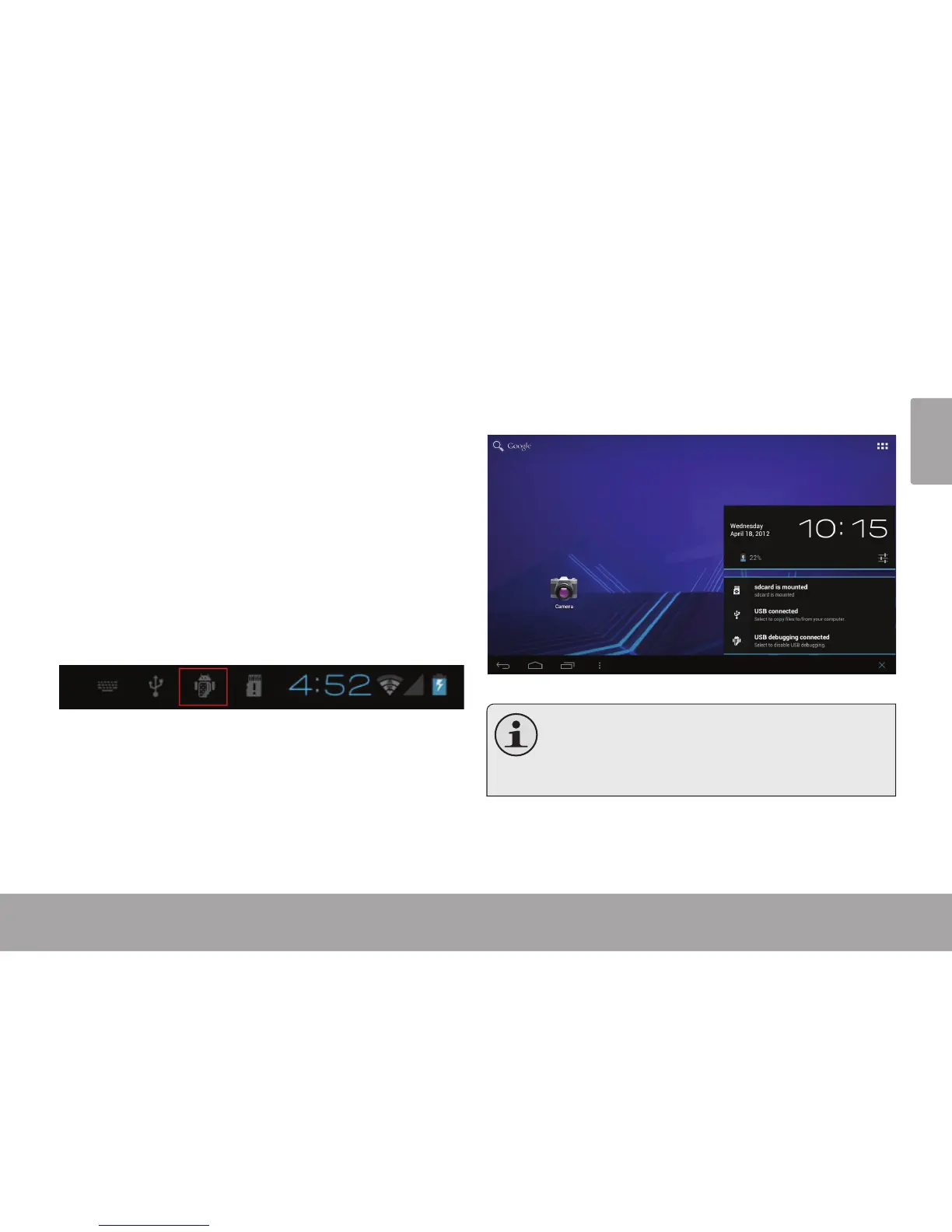 Une fois la tablette est connectée, un icône USB