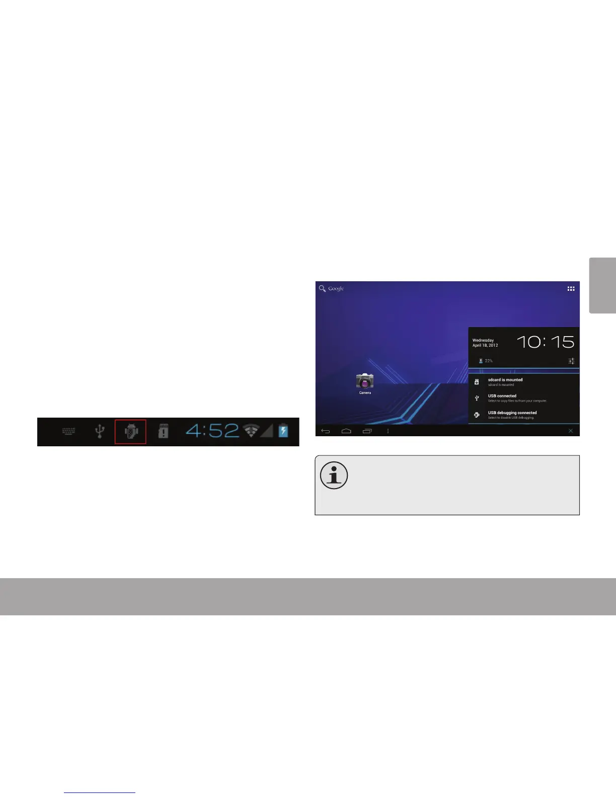 When your tablet is connected, a USB icon will
