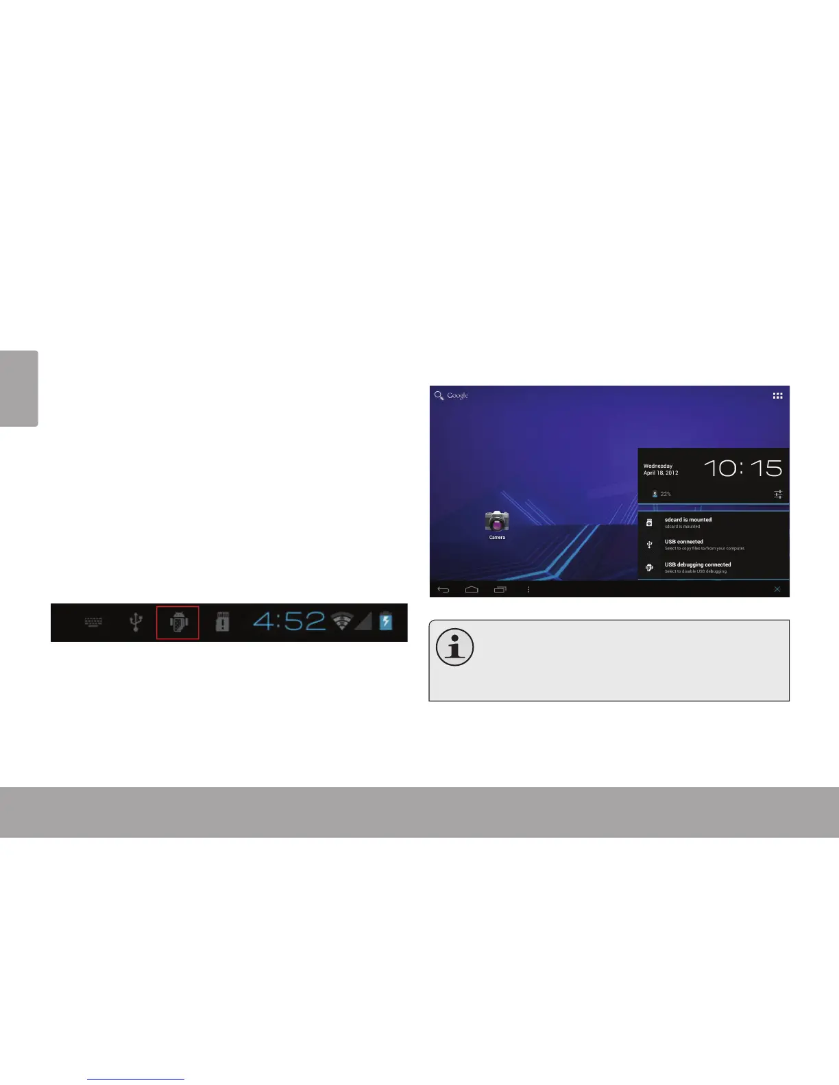 ícono de USB en la barra de noticación.