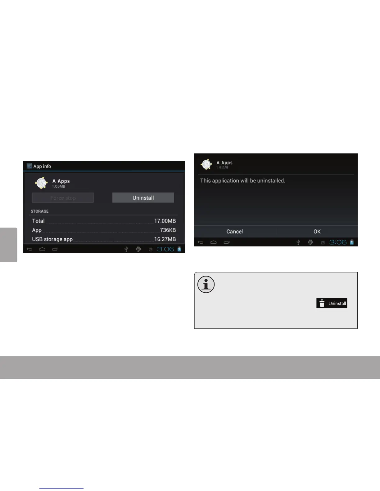 5. Touchez Uninstall (Désinstaller). La tablette vous