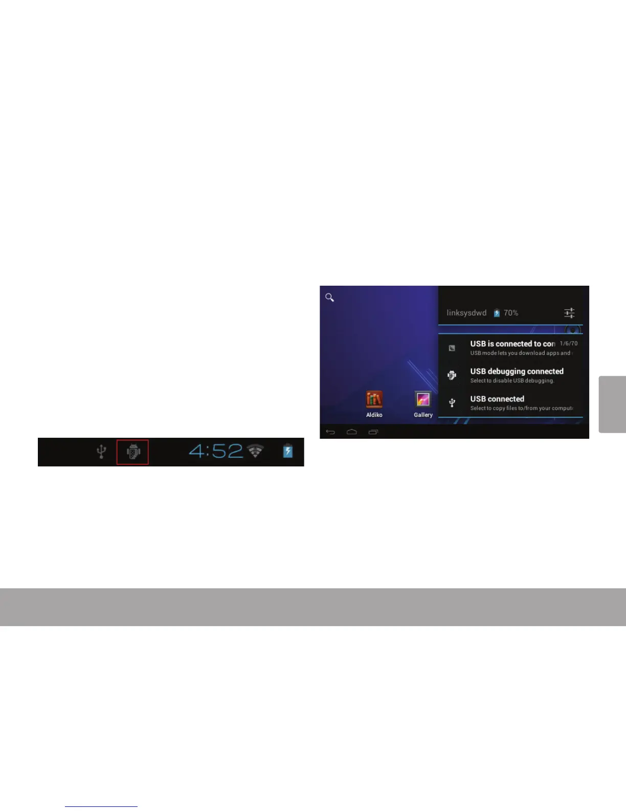 Une fois la tablette est connectée, un icône USB
