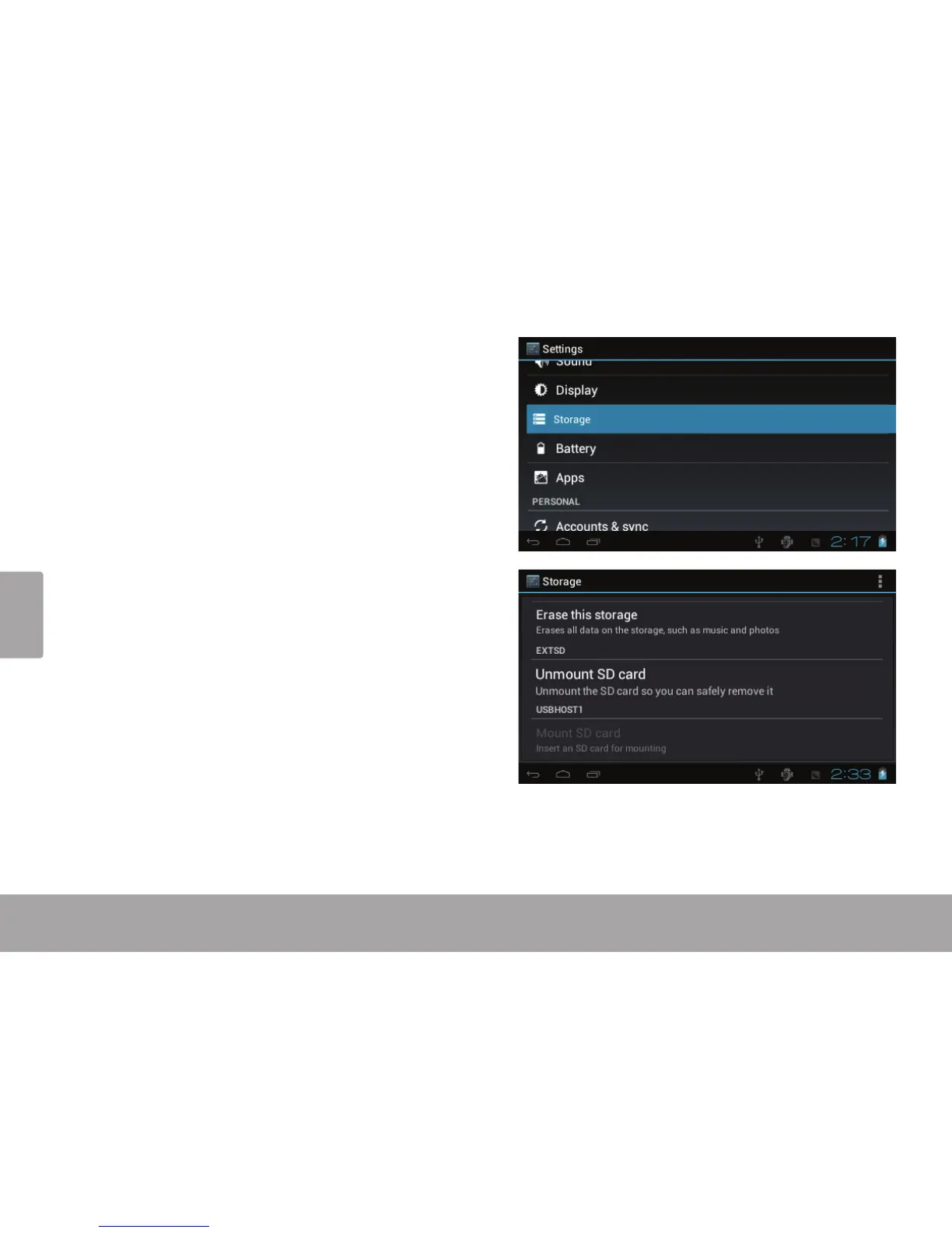 c. Touchez Unmount SD card pour préparer la dé-