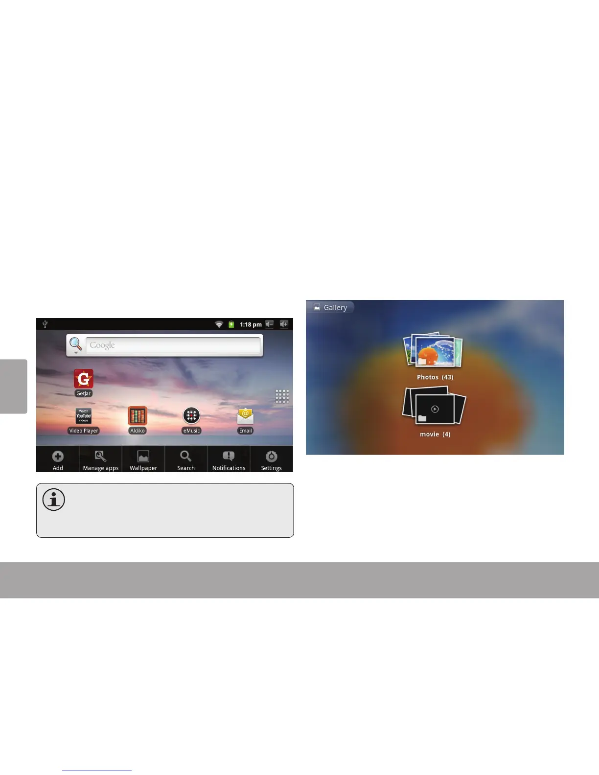 Il y a deux types de menus utilisés par la tablette.
