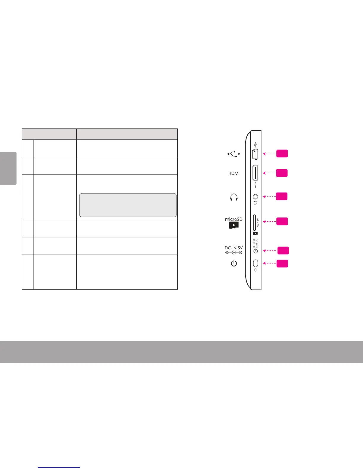 12 Power key Press to turn the unit on, or to turn