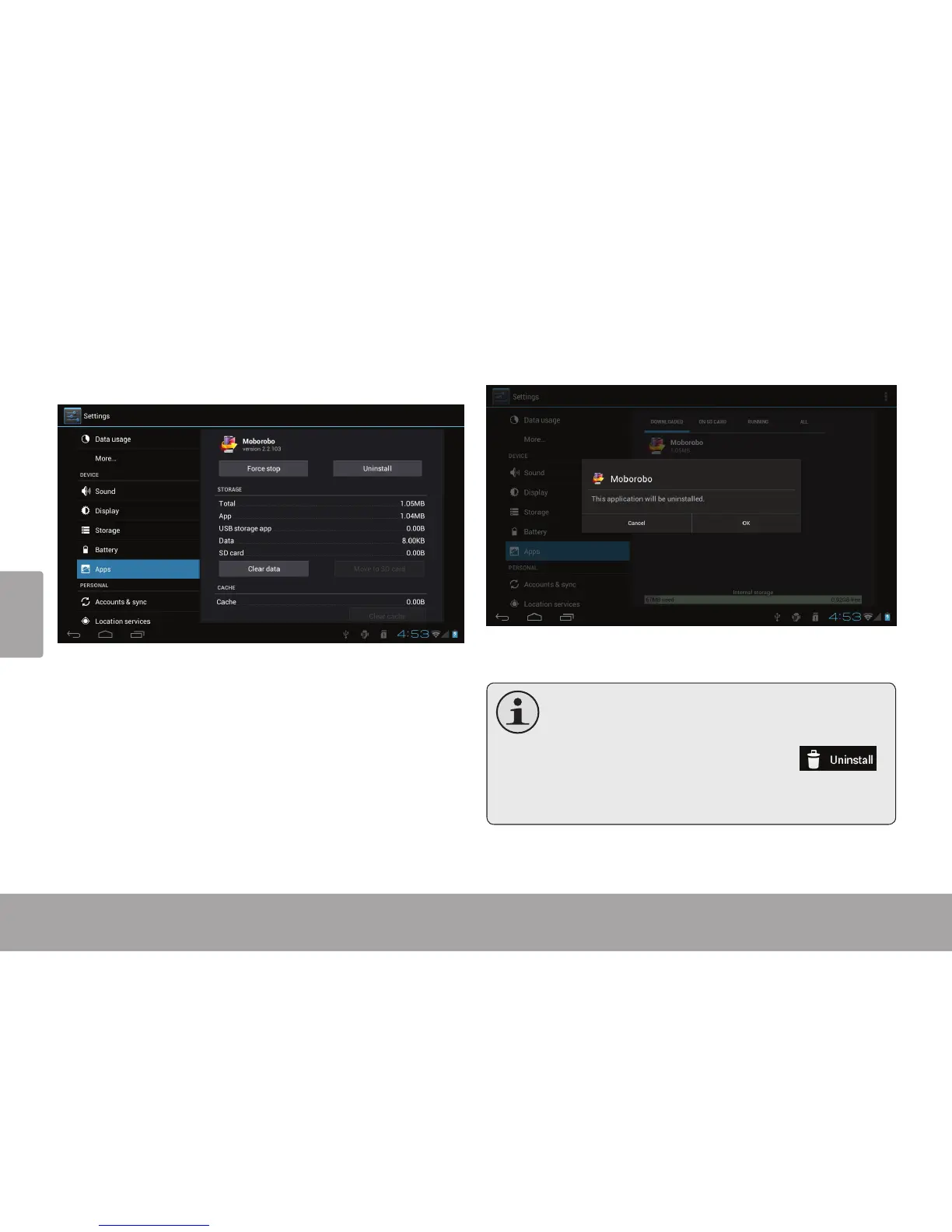 5. Touchez Uninstall (Désinstaller). La tablette vous