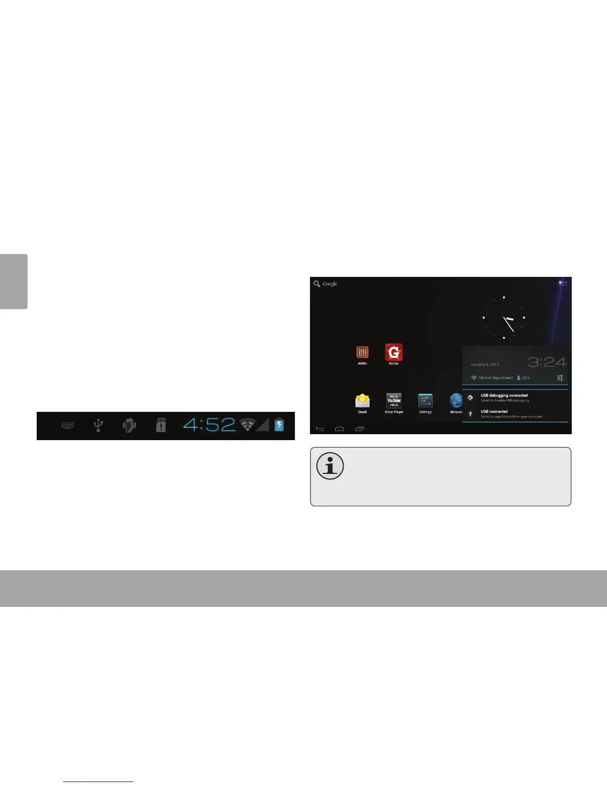 When your tablet is connected, a USB icon will