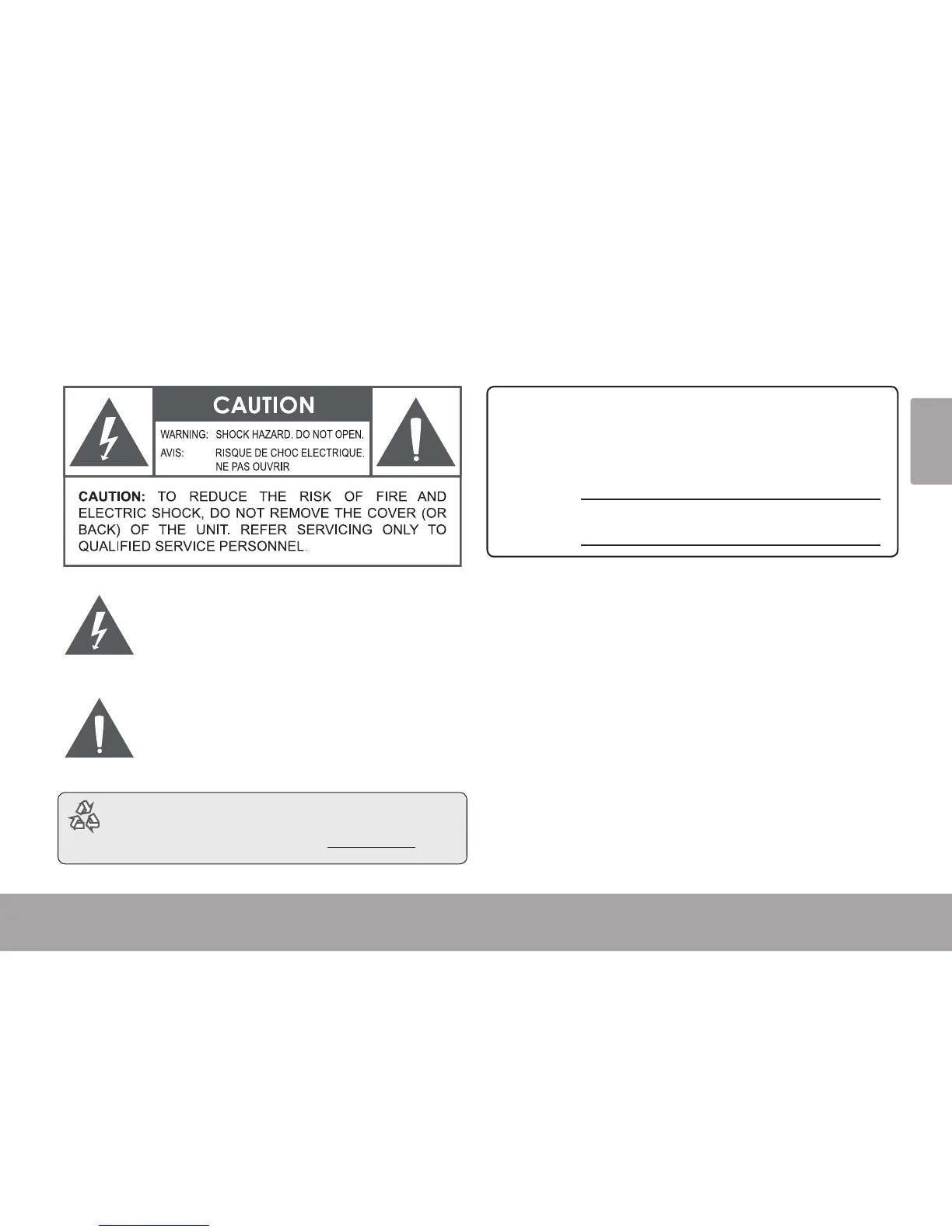 WARNING: To prevent re or shock hazard, do not expose this