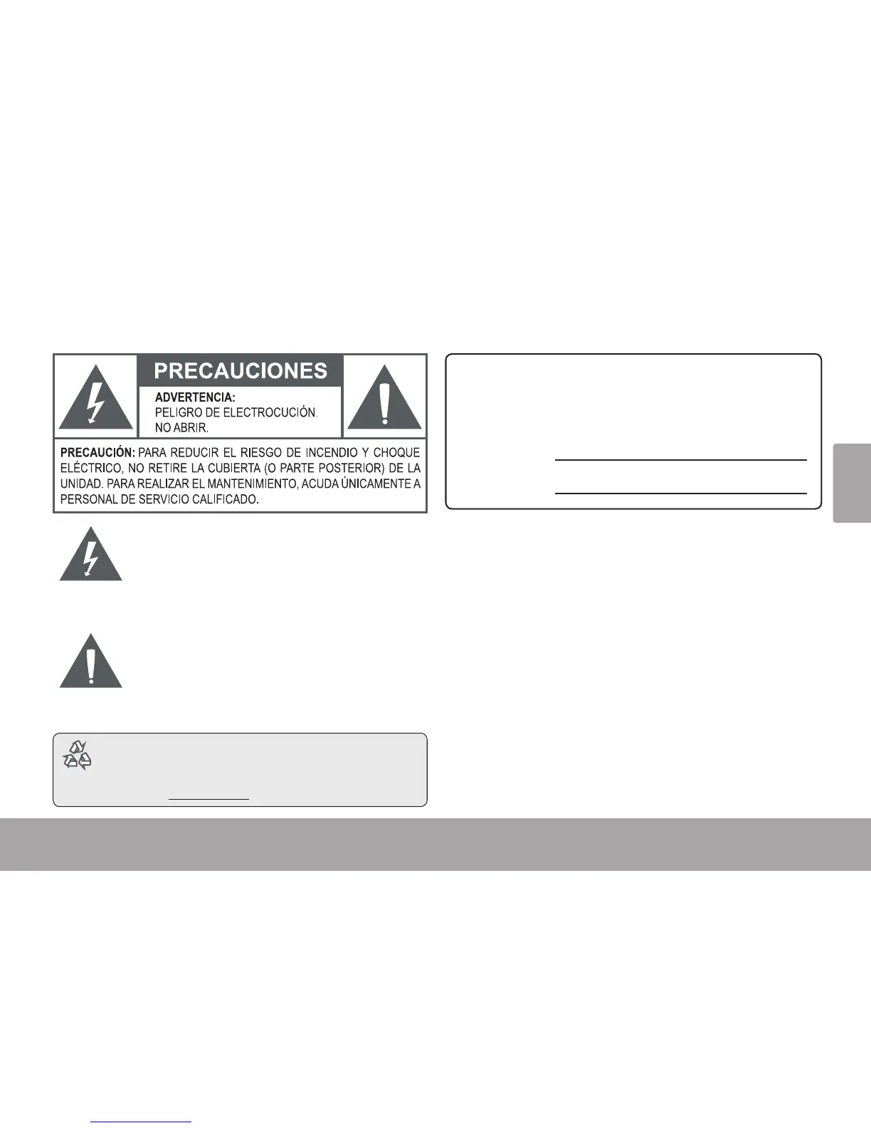 ADVERTENCIA: Para prevenir el riesgo de descarga eléctrica, no