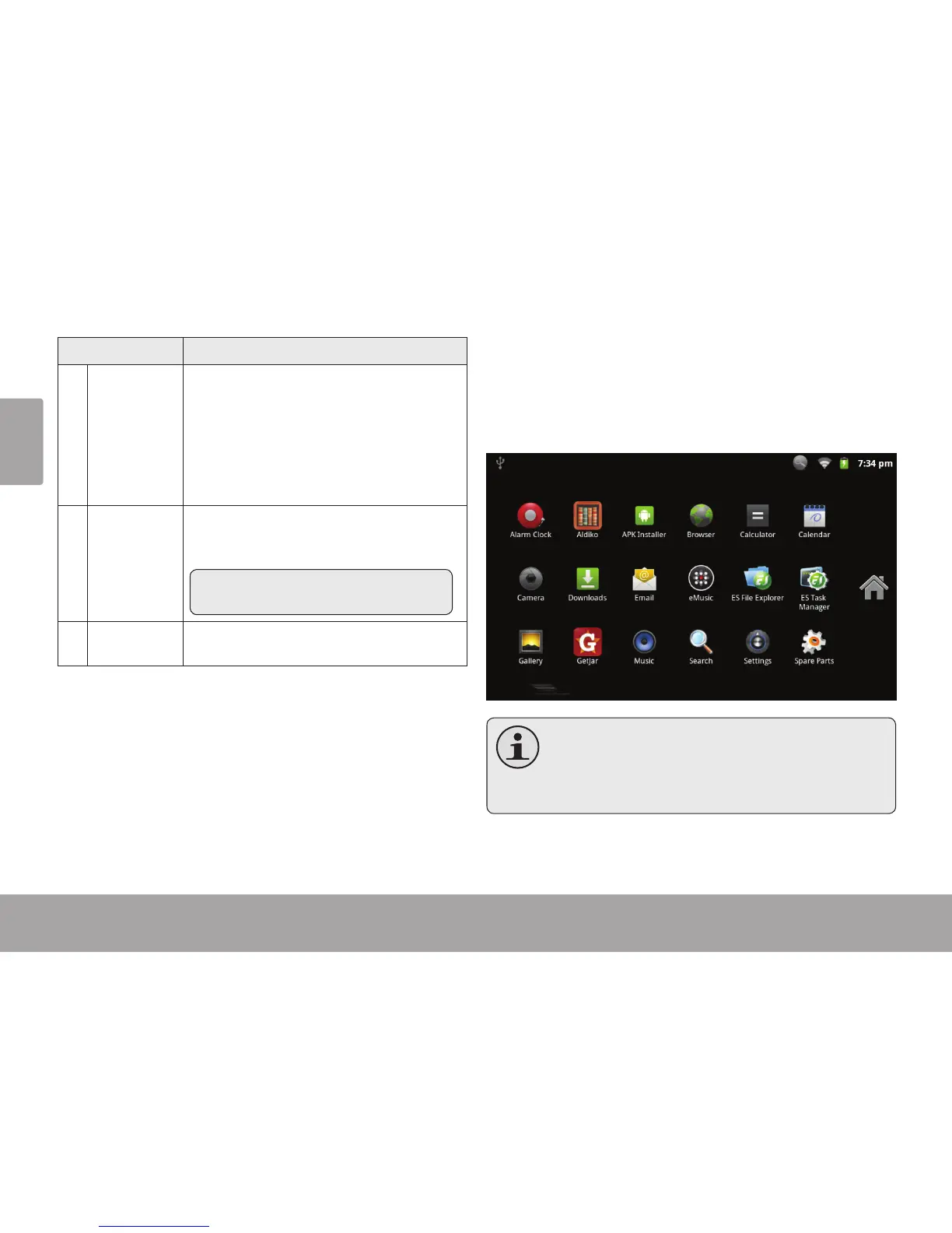 applications installed on the tablet. Touch