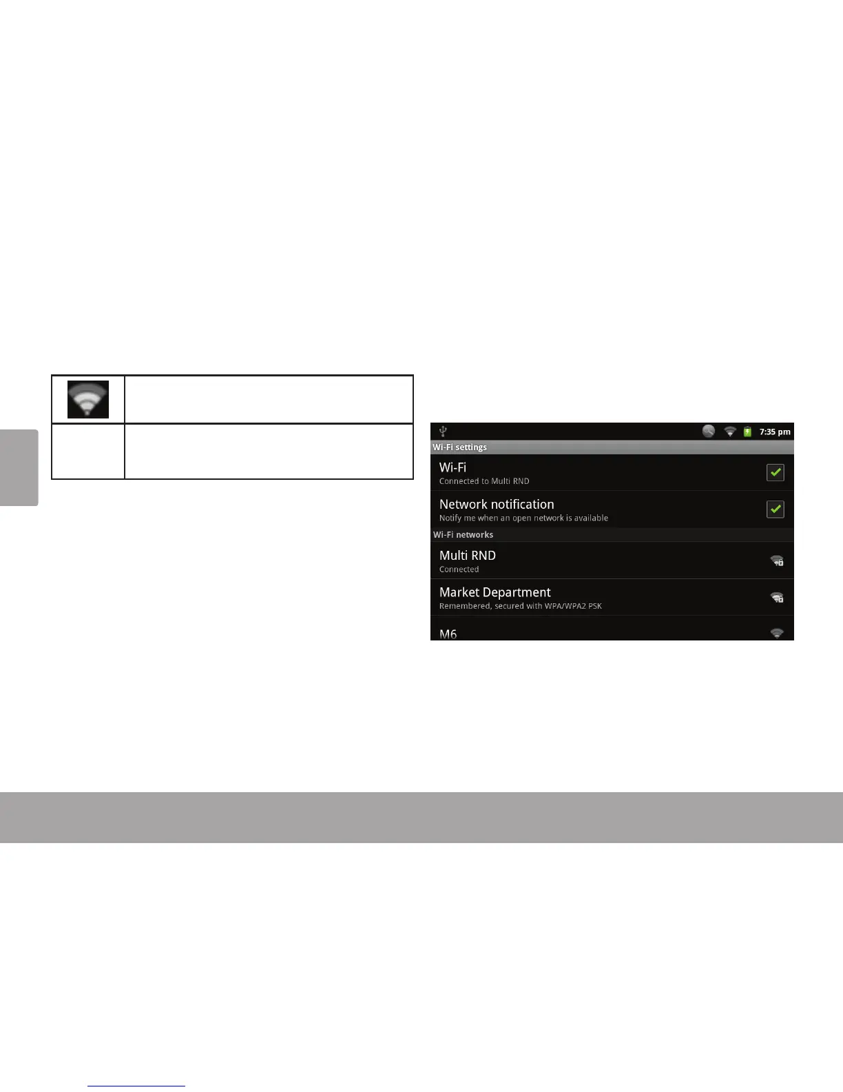 tableta buscará y mostrará una lista de las redes Wi-Fi