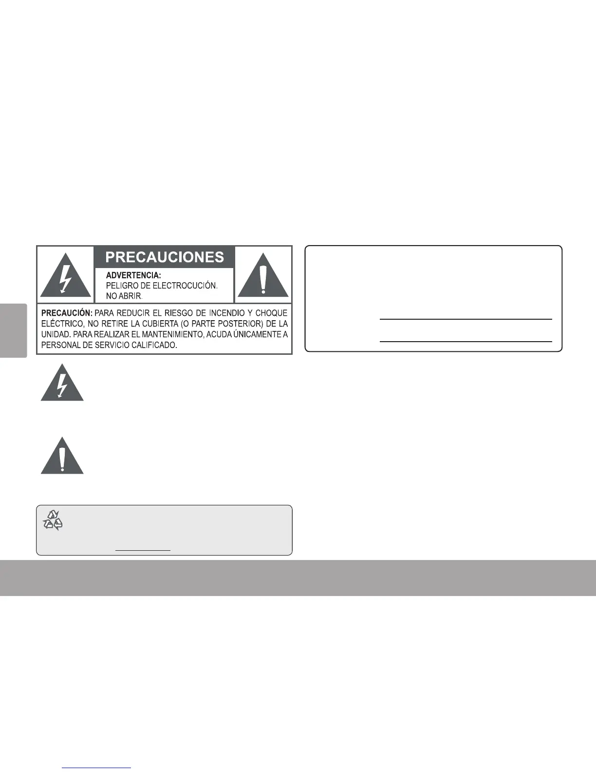ADVERTENCIA: Para prevenir el riesgo de descarga eléctrica, no