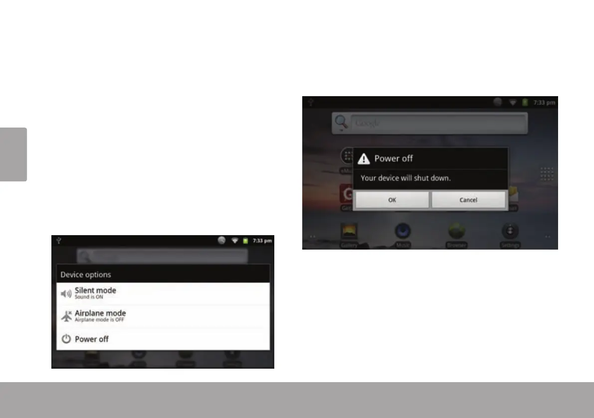 2. Toque Power off (apagar) desde la pantalla. Apa-