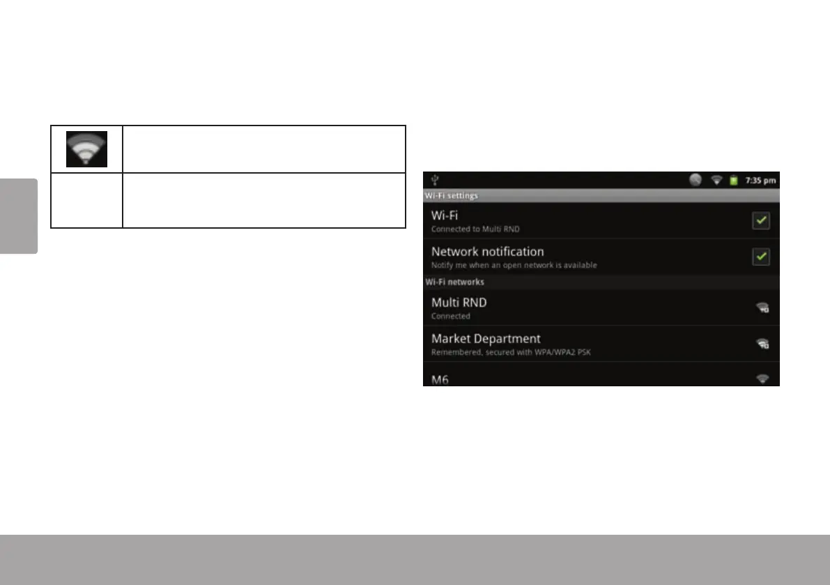 estado del Wi-Fi de la tableta.