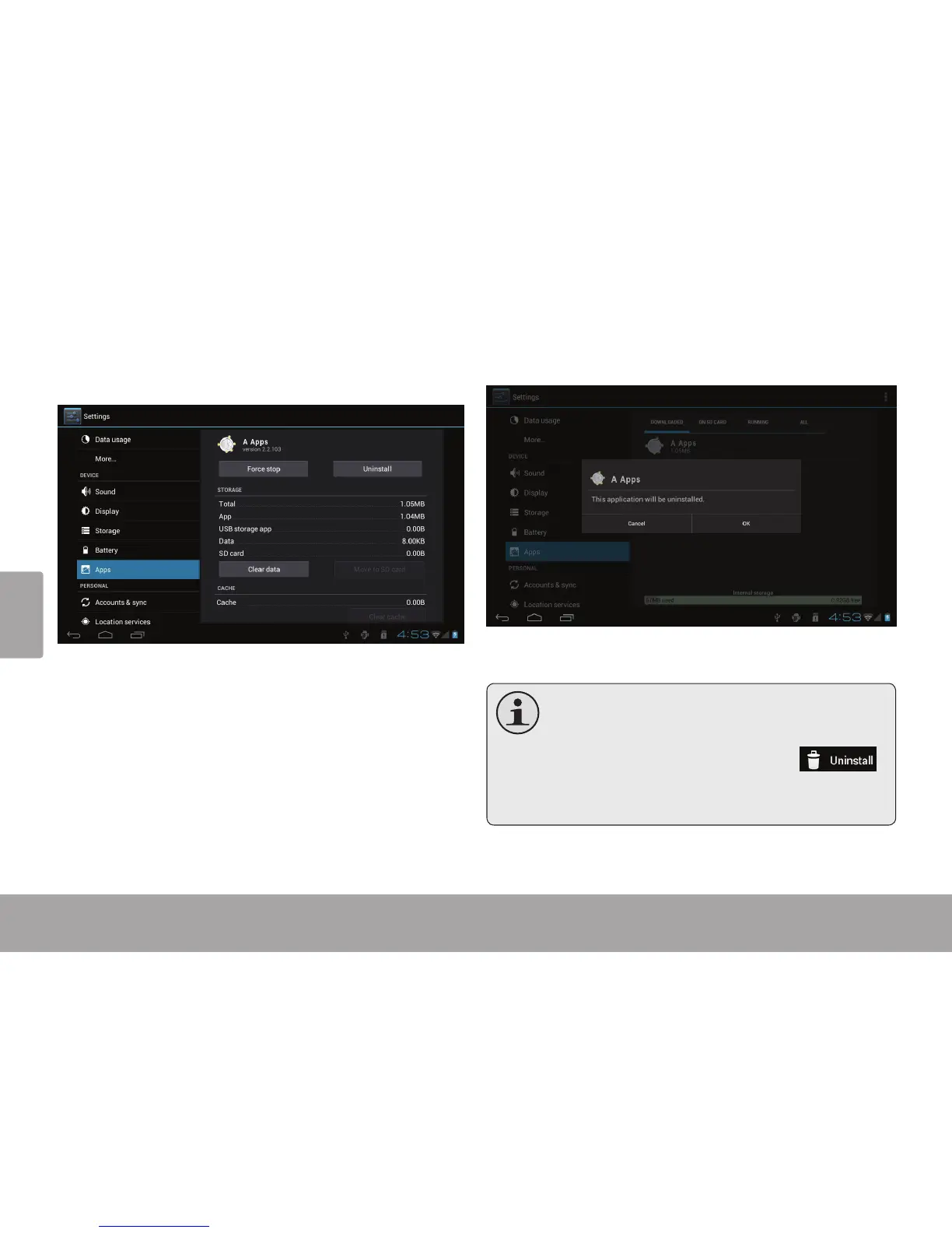 5. Touchez Uninstall (Désinstaller). La tablette vous