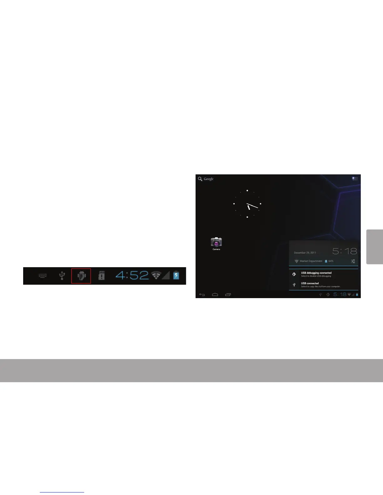 Une fois la tablette est connectée, un icône USB