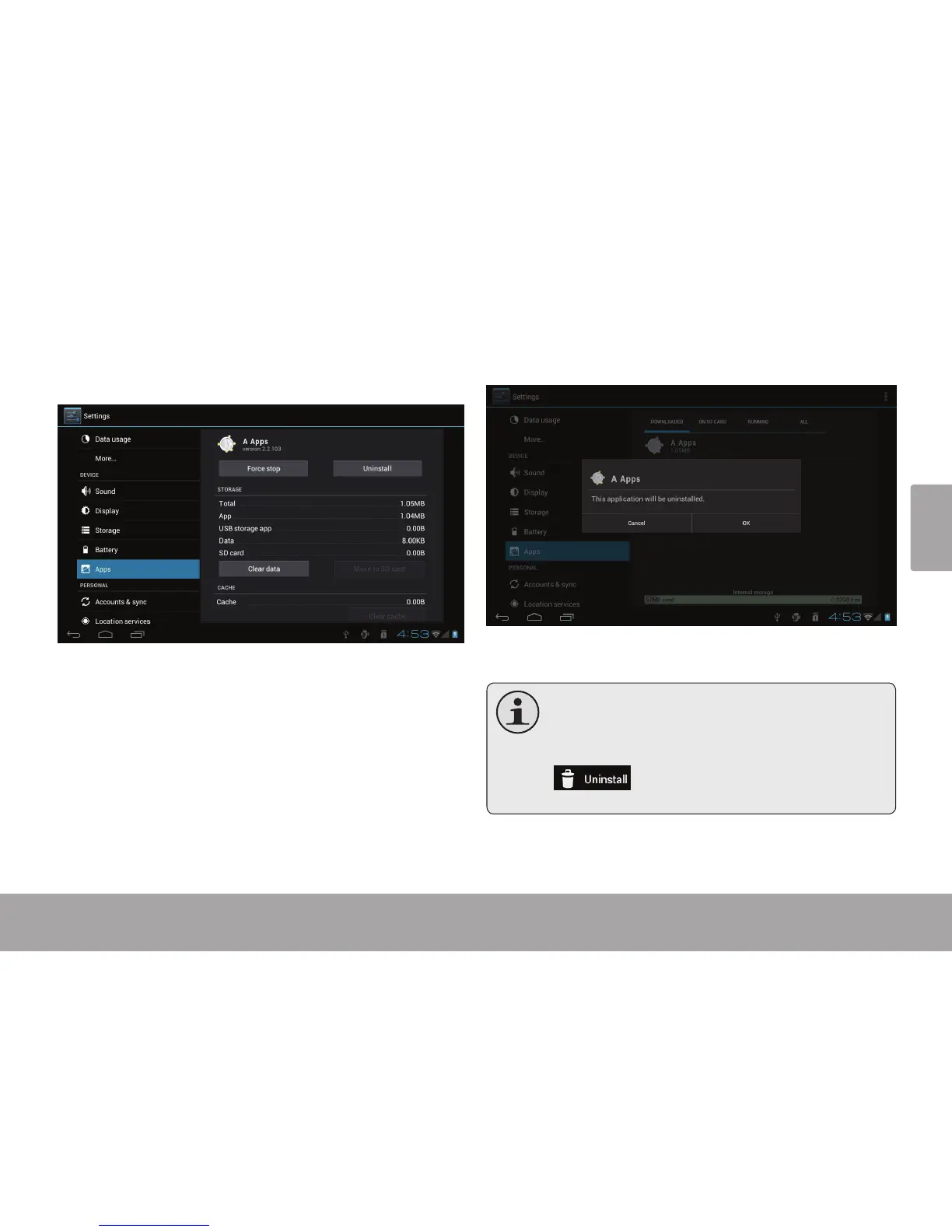 5. Toque Uninstall (desinstalar). La tableta le solicitará