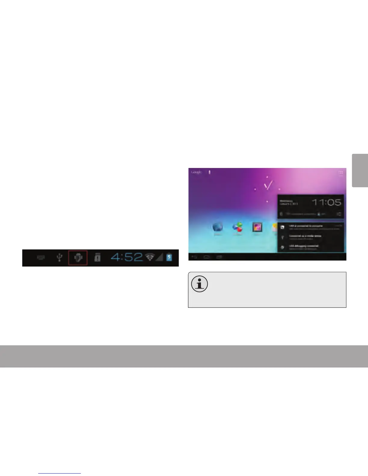 When your tablet is connected, a USB icon will