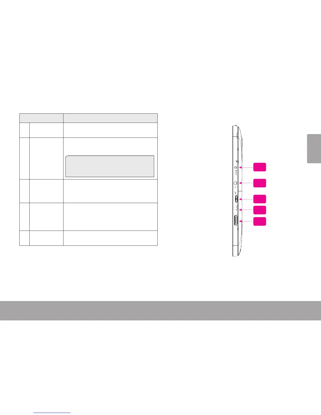 10 Reset key Press to reset the tablet if it freezes or