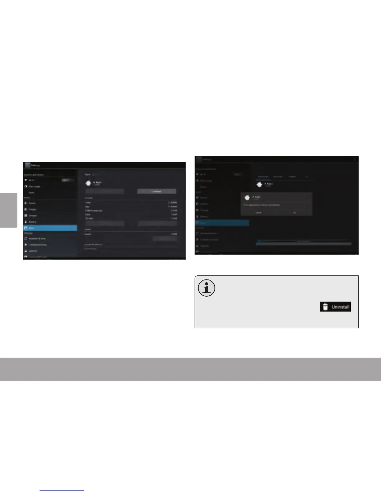 5. Toque Uninstall (desinstalar). La tableta le solicitará