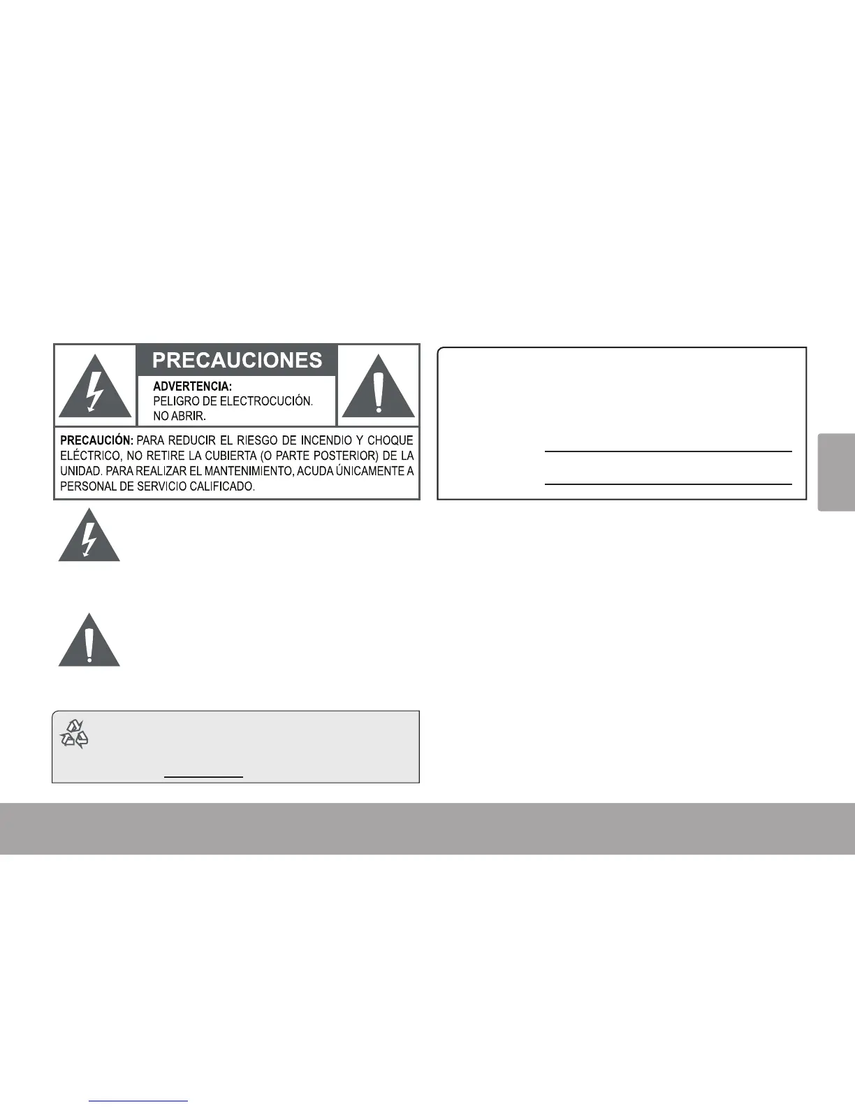 ADVERTENCIA: Para prevenir el riesgo de descarga eléctrica, no