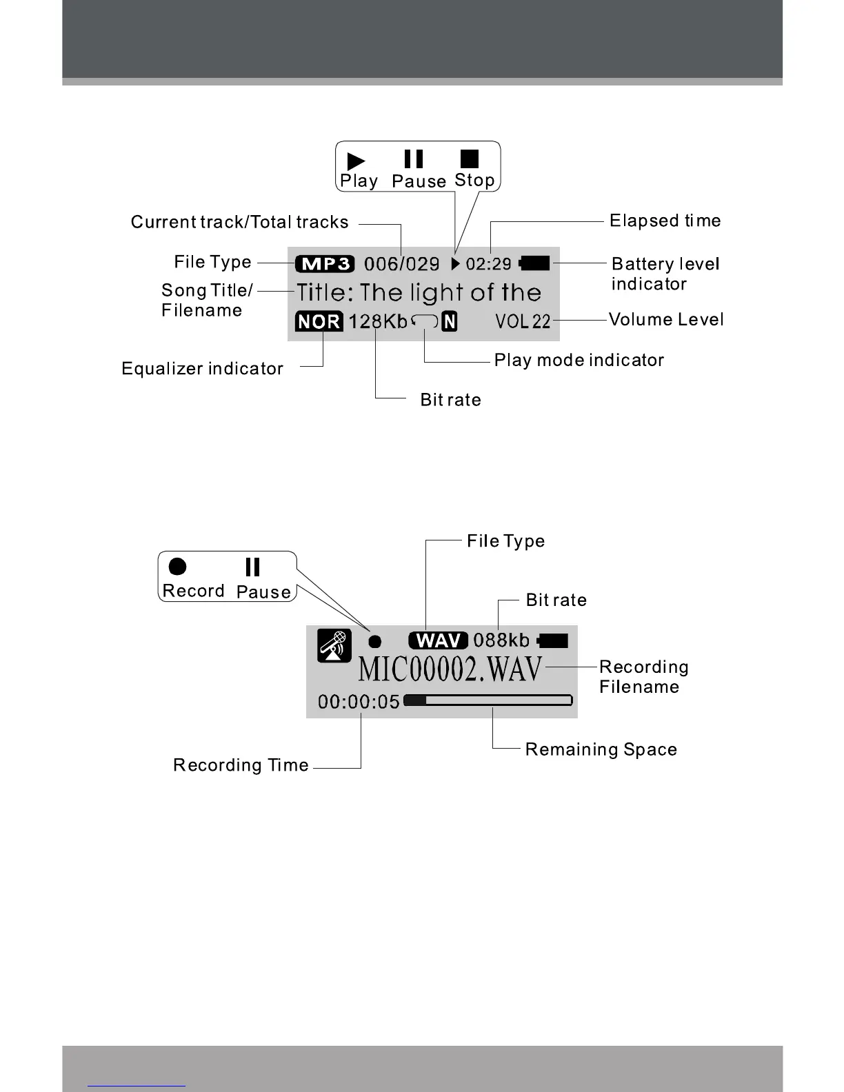 Coby MP-300 1GB - Getting Started: Display Modes; Display Modes Explained