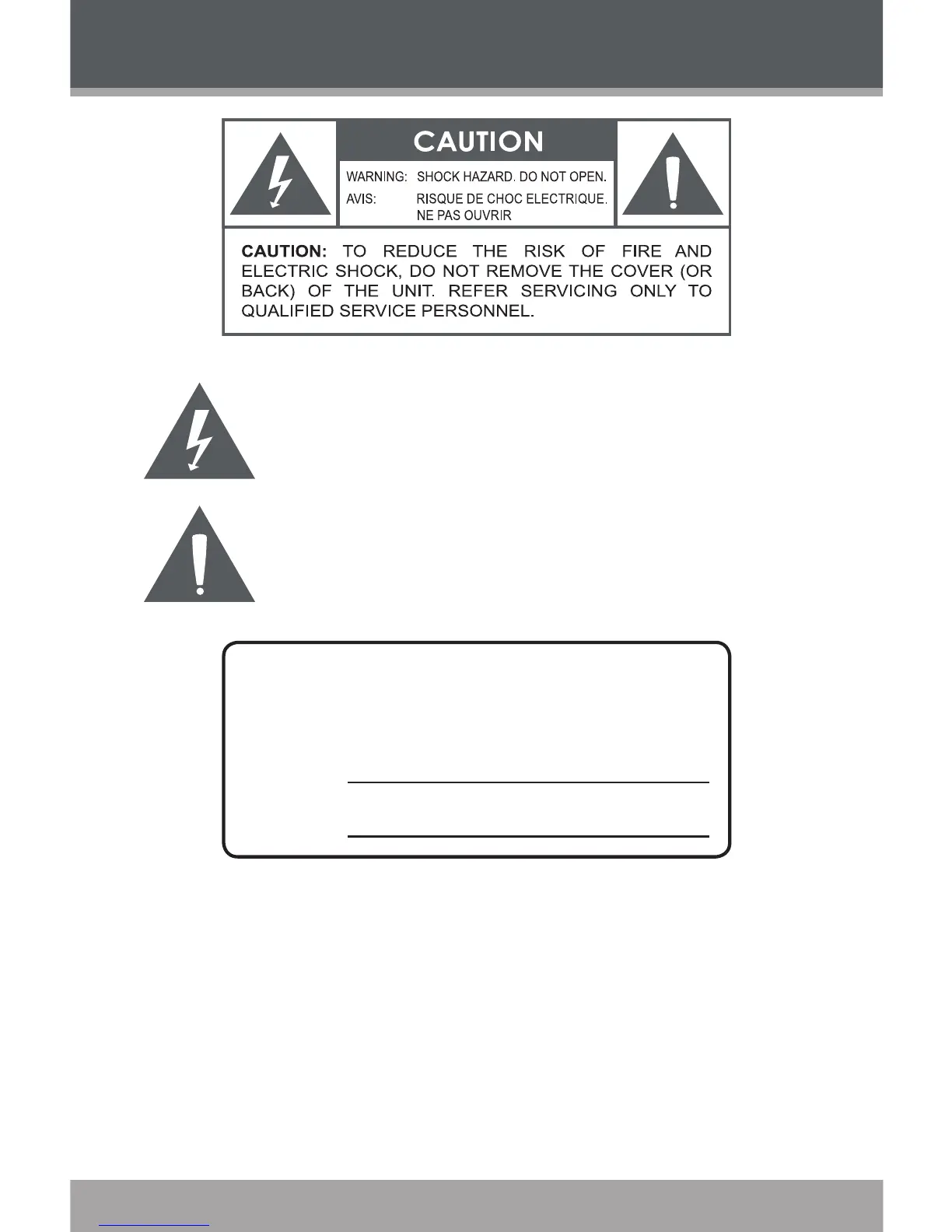 WARNING: To prevent re or shock hazard, do not expose this device to rain or moisture.