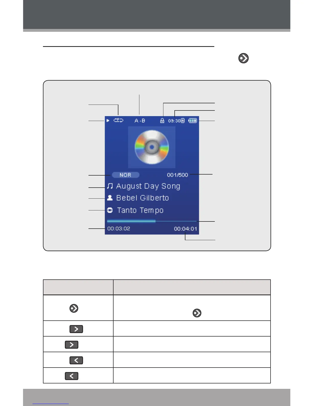 Coby MP-705-1G - Now Playing Controls (Music Playback)