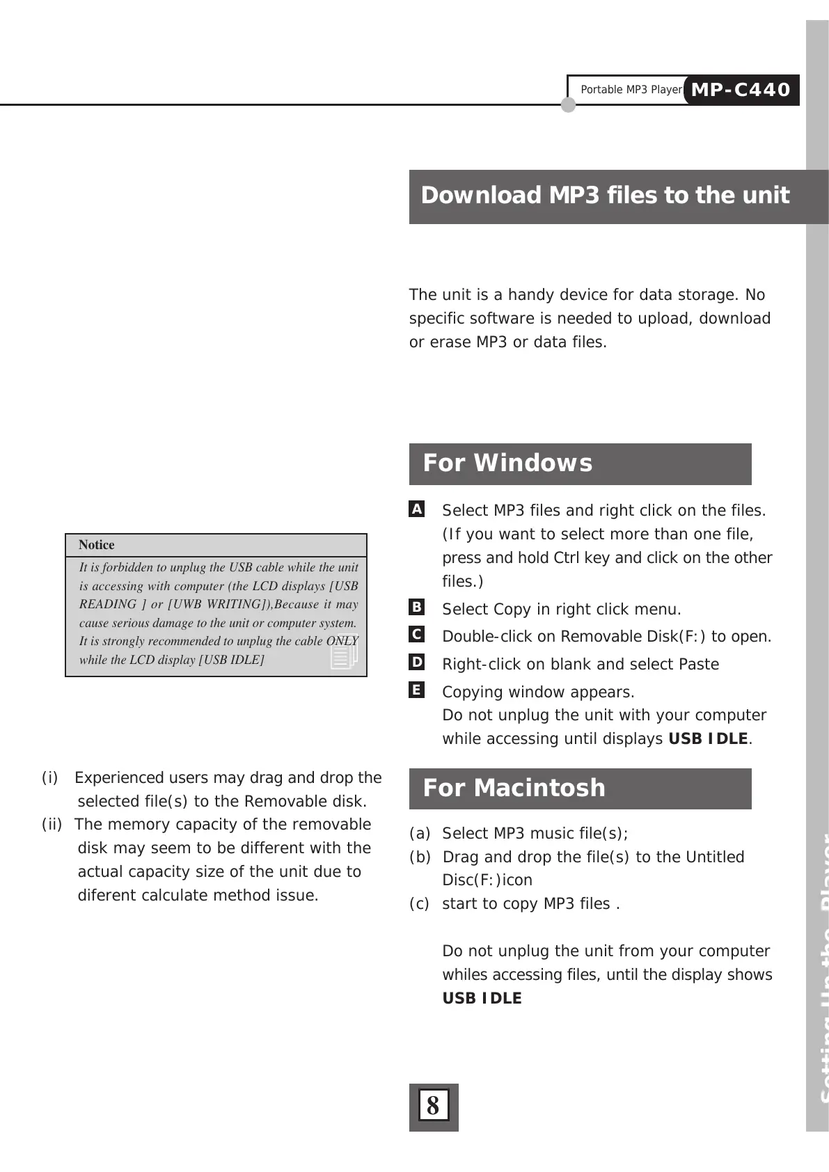 or erase MP3 or data files.
