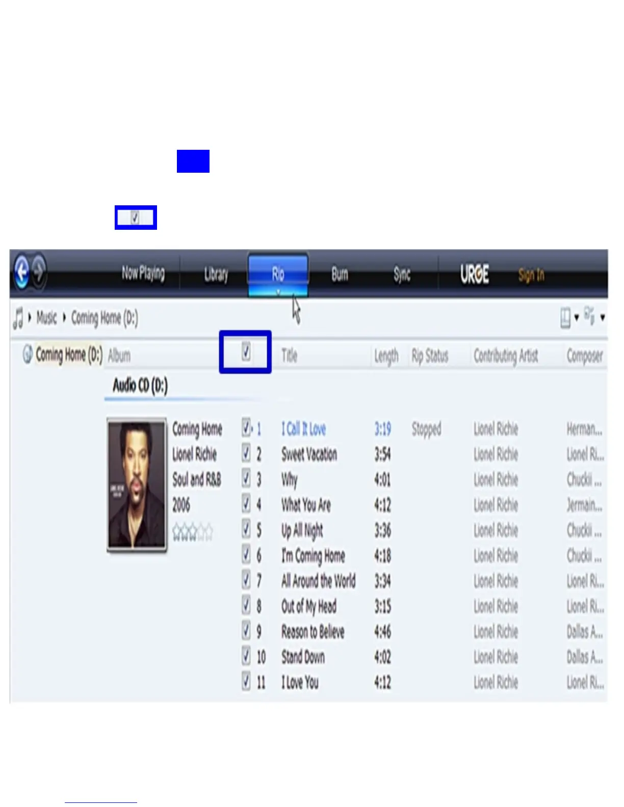 tab and select which “Title” to rip.
