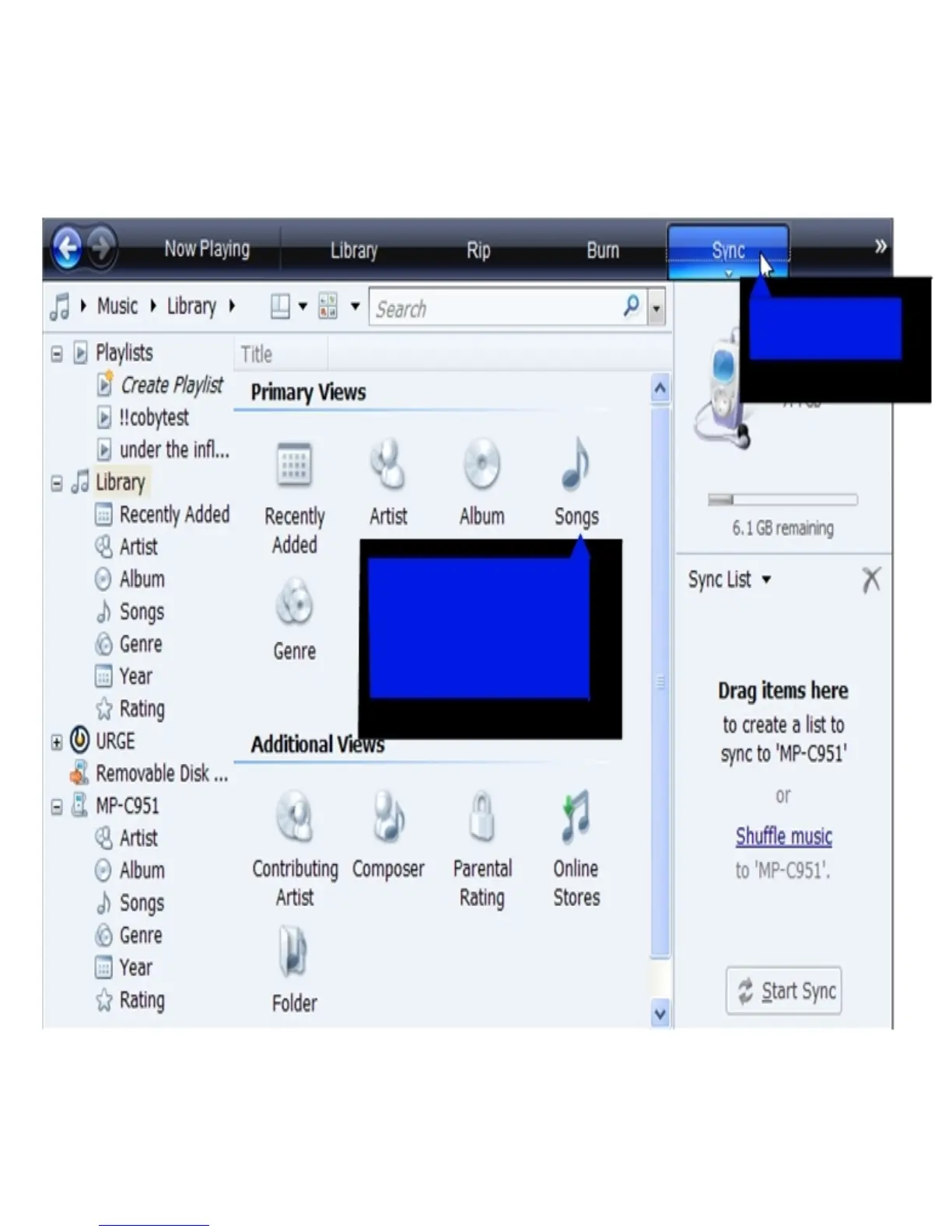 3) Browse your music library to choose songs to sync.