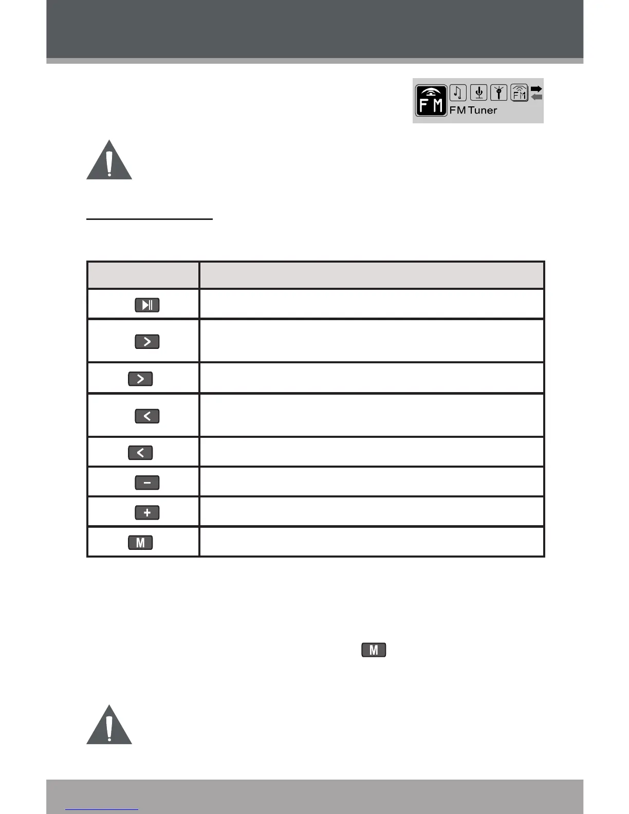 Use the following controls in FM TUNER mode.