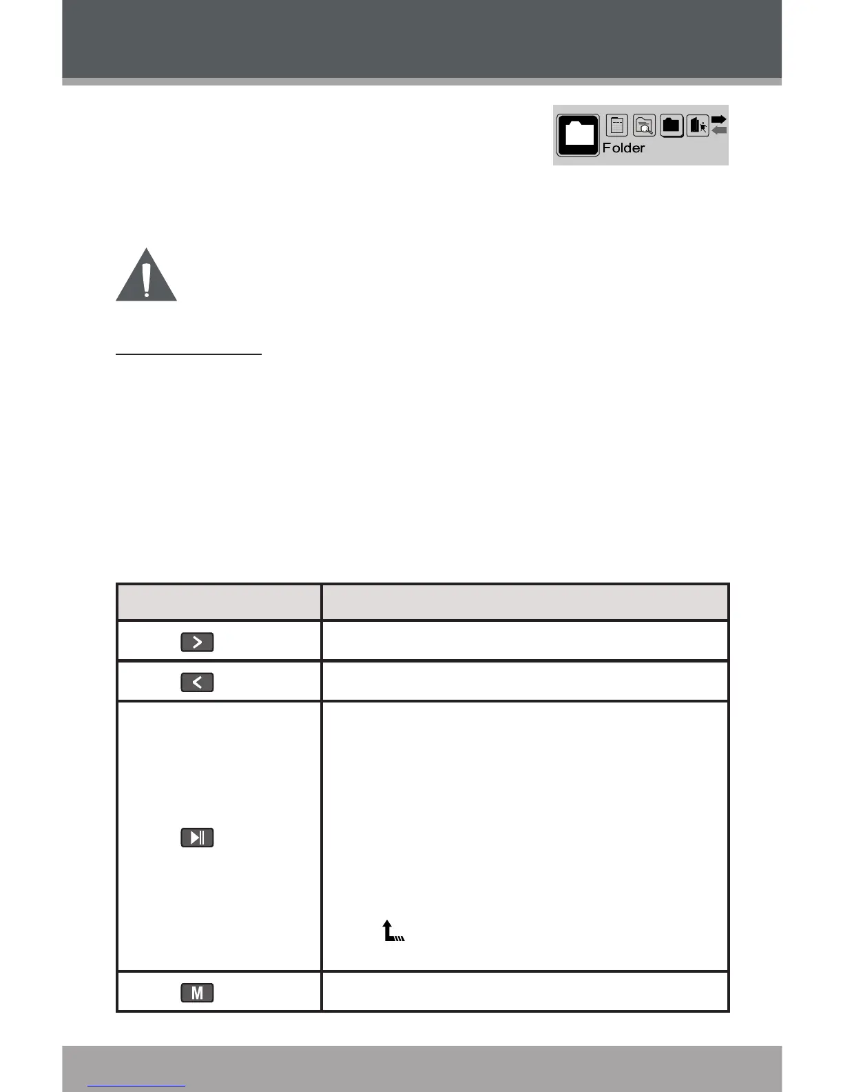 Use the following controls in FOLDER mode.